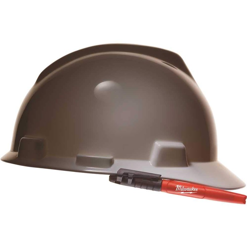 The 48-22-3104 Milwaukee Inkzall Permanent Markers are optimized for jobsite conditions. The durable tip is designed to withstand writing on rough surfaces such as OSB, cinderblock and concrete and writes through dusty, wet or oily contamination. The hard hat clip is designed to clip onto the brim of hard hats for easy access.