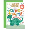 4th Dinosaur Birthday Card - Large A5 Size - T-Rex Children's Kids Birthday Card for 4 Year old Kids four, fourth