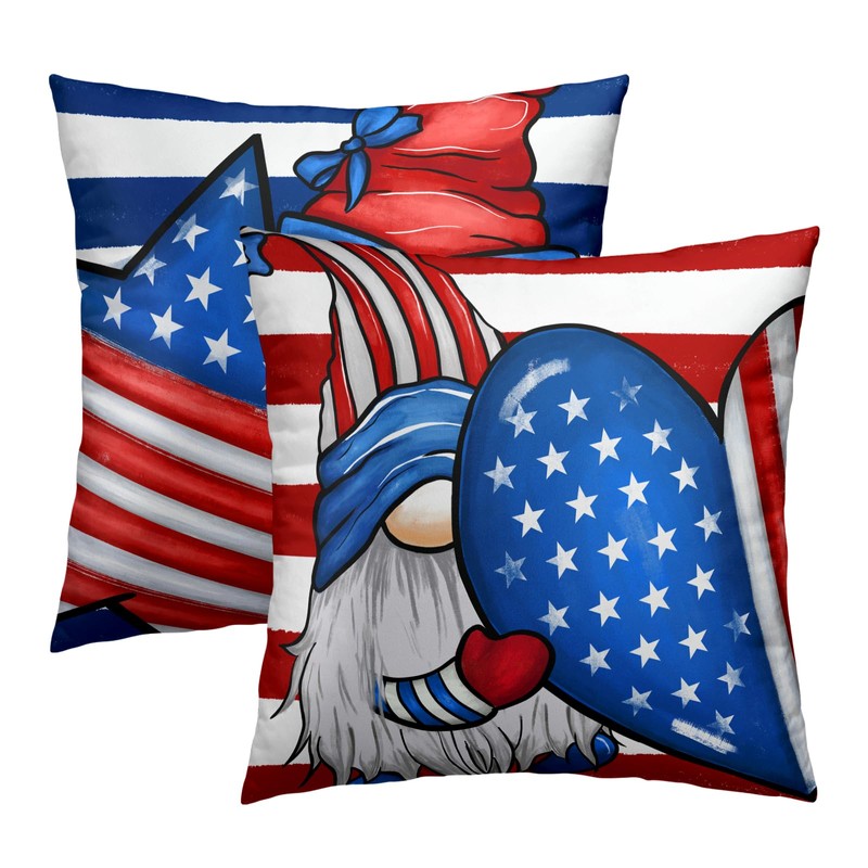 4th of July American Gnome Pillow Cover Set of 2 Patriotic Red Blue Stars Stripes Throw Pillow Covers 18x18 Inch Independence Memorial Day Double Sided Home Decor Pillowcase for Couch Sofa Bedroom