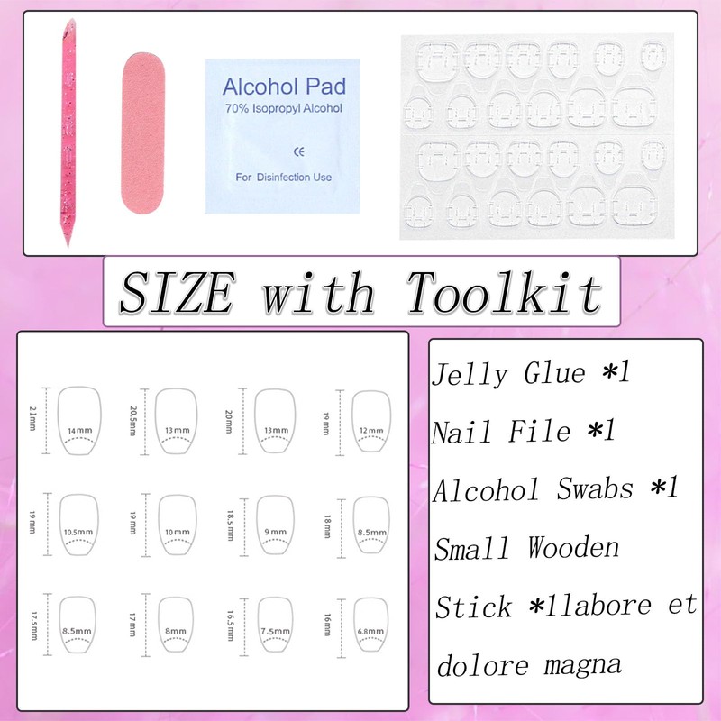 6.(1) Use jelly glue and glue at the same time to stick to the nail. nails can be worn for 1 to 2 weeks (Note: Nails that have been glued cannot be reused, and the product packaging does not contain liquid nail glue)
