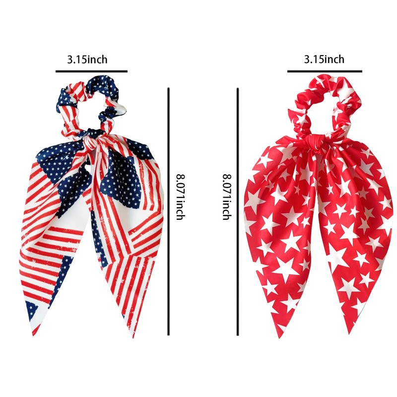 4th Of July Hair Scrunchies Rubber Bands Hair Bands For Women 2Pcs Red White Blue Red-Star American Flag Big Bows Oversized Long Tail Design Patriotic Independence Day Memorial Day Accessories
