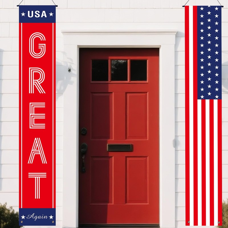 4th of July Hanging Decorations 2 Pcs American USA Flag Banners Independence Day Memorial Day Outdoor Decor