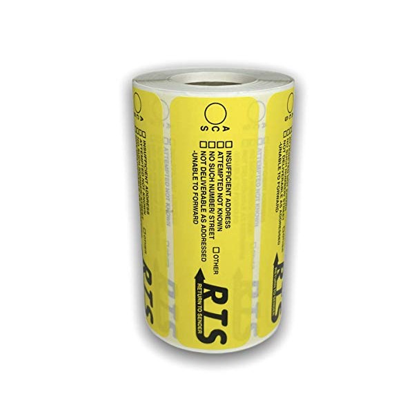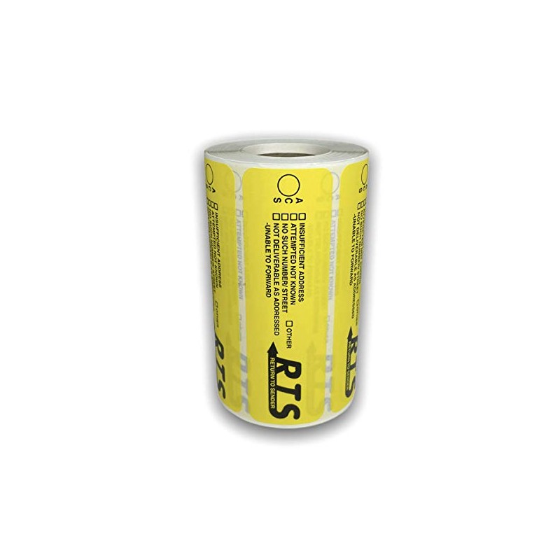 4x1-1/4 Yellow RTS Return to Sender Special Handling Instructions Mailing Shipping Stickers 500 Labels per roll