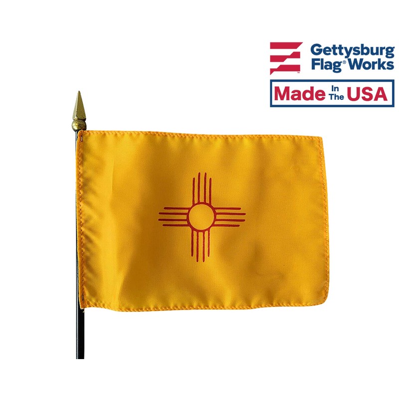 4x6 E-Gloss New Mexico Stick Flag w/U.S. Stick Flag & 2 Flag Plastic Table Base - Qty 6