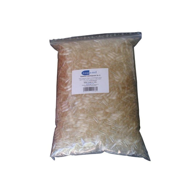 Transparent empty capsules made from BSE-free gelatine, size "0".