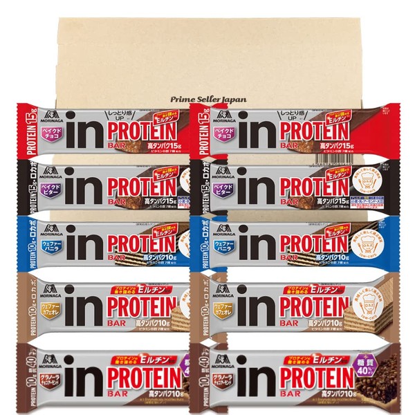- 森永 インバー プロテイン 5種10本 inバー PSJバラエティBOX(ベイクドチョコ/ベイクドビター/ウェファーバニラ/ウェファーカフェオレ/グラノーラ チョコアーモンド)プロテインバー プロテインチョコバー