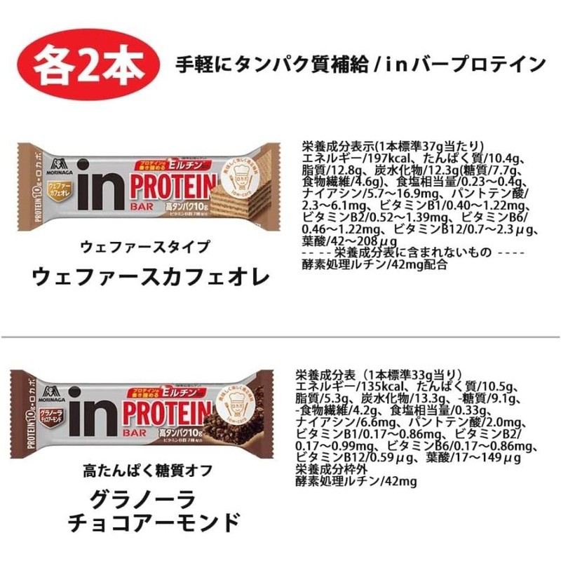 - 不足しがちなタンパク量を効率的に摂取するにはinバーが大変おすすめです。また、タンパク質の働きに必要なビタミンB群(7種類)を添加しています。