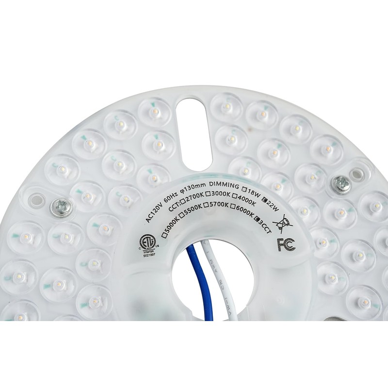 5.12'' LED Ceiling Fan Light Retrofit Kit, Ceiling Light Replacement Panel PCB, 22W 3CCT 3000K 4500K 6000K 2640LM 120V CRI80 ETL Dimmable (22)