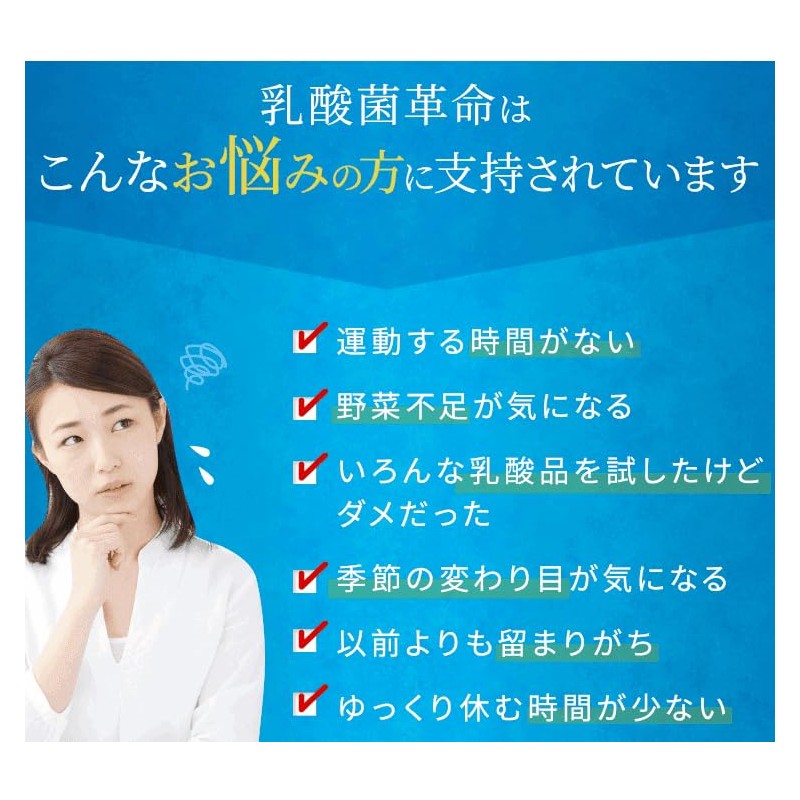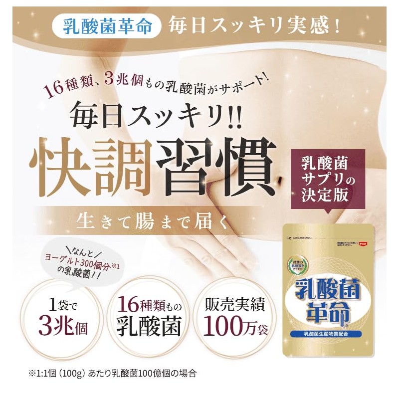 • 【選ばれ続けて15年以上】「元祖」乳酸菌革命が長年愛されている理由は、稀少で高価な『乳酸菌生産物質』をメイン成分として採用しお通じや腸内環境にお悩みを持つ方の体感を第一に考えて商品開発をしているからです。