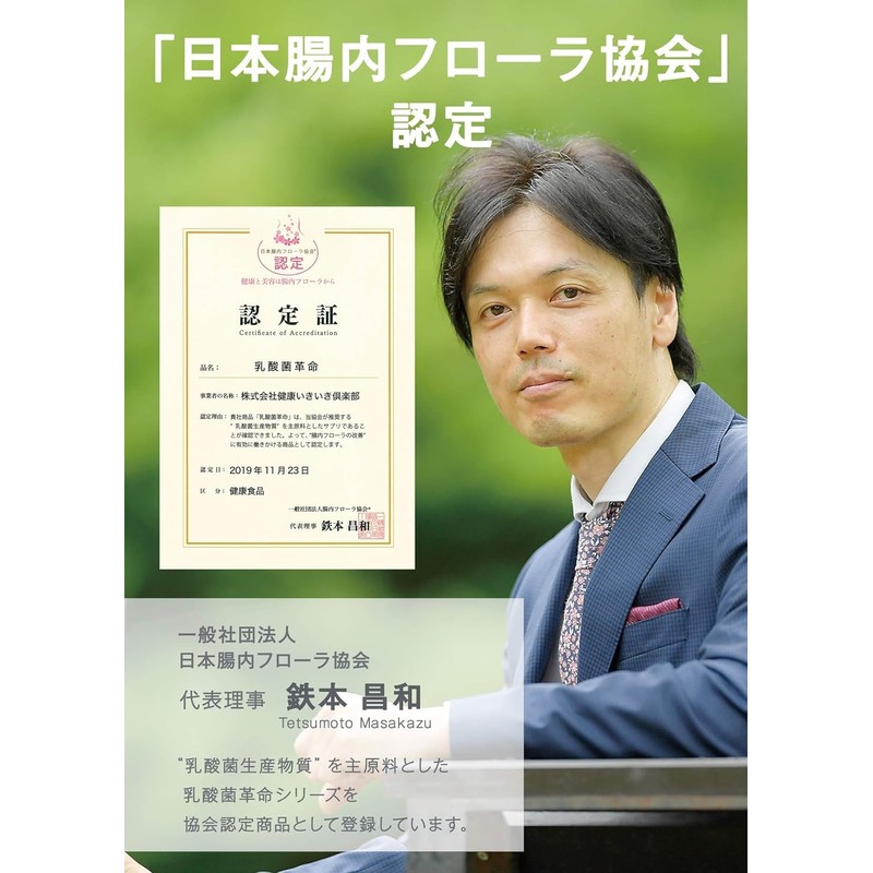 • 【安心・安全なものを】お子様や妊婦さんにまで毎日安心してお飲みいただくため、2つのことを徹底しています。《化学性の添加物不使用》乳酸菌革命は耐酸性のカプセルを除く使用成分において、化学性の添加物は使用しておりません。《国内GMP認定工場で製造》原料の受け入れから製造・出荷までの全ての過程において、安全で一定の品質が保たれるようにするための製造工程管理基準をクリアした工場で乳酸菌革命は作られております。