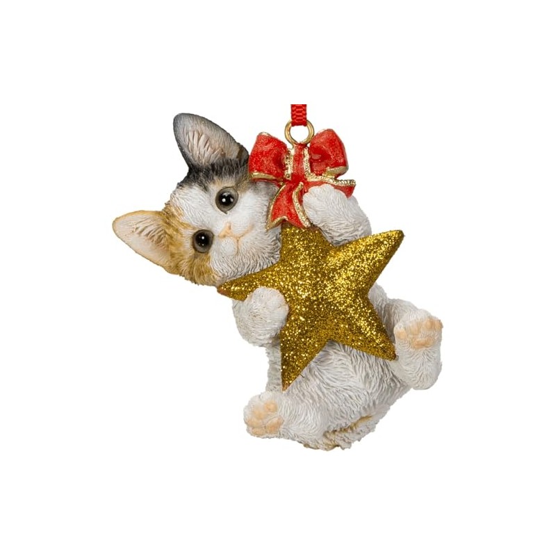 - 【星を抱える三毛猫オーナメント】陶器のような高級感のある質感が魅力のポリレジン製オーナメントです。