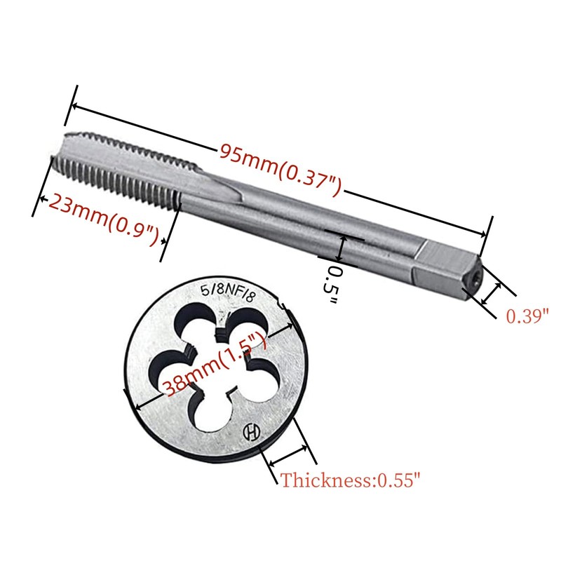 5/8"-18 NF HSS Tap And Die Set, Machine Thread Tap And NF Round Thread Die Right Hand