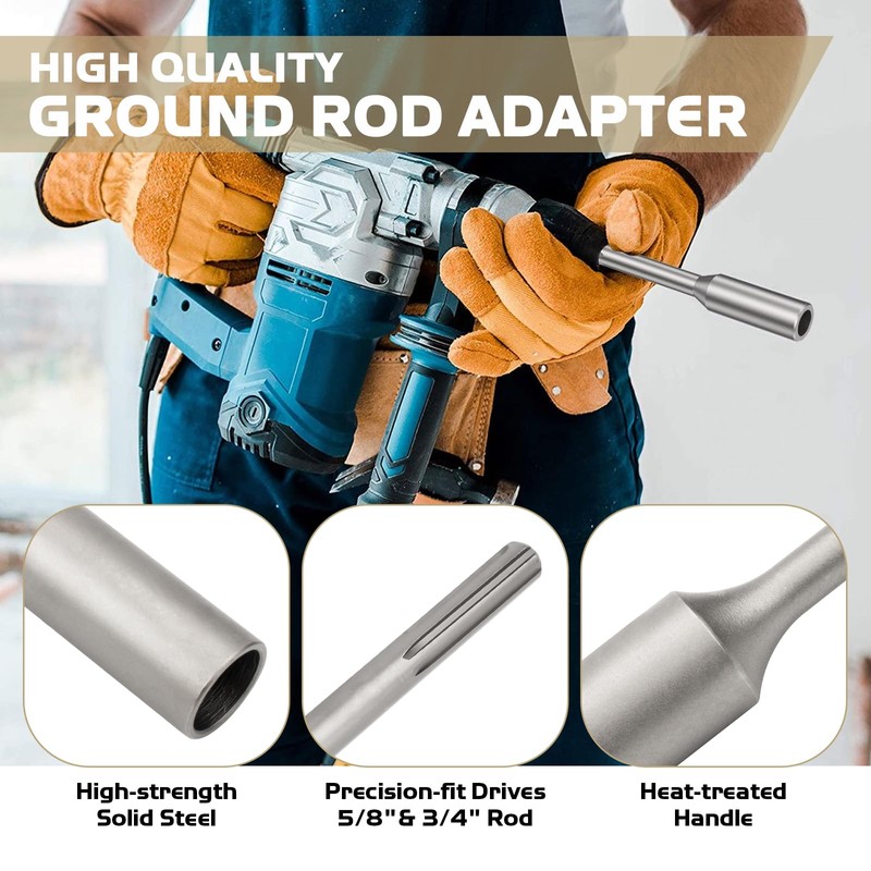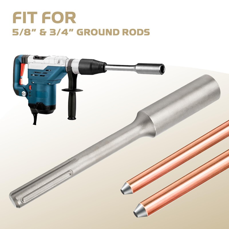 5/8 Inch & 3/4 Inch Ground Rod Driver, SDS Max Hammer Drill Tool Compatible with Bosch/Dewalt/Hilti/Milwaukee & Other SDS Max Rotary Hammer Drill