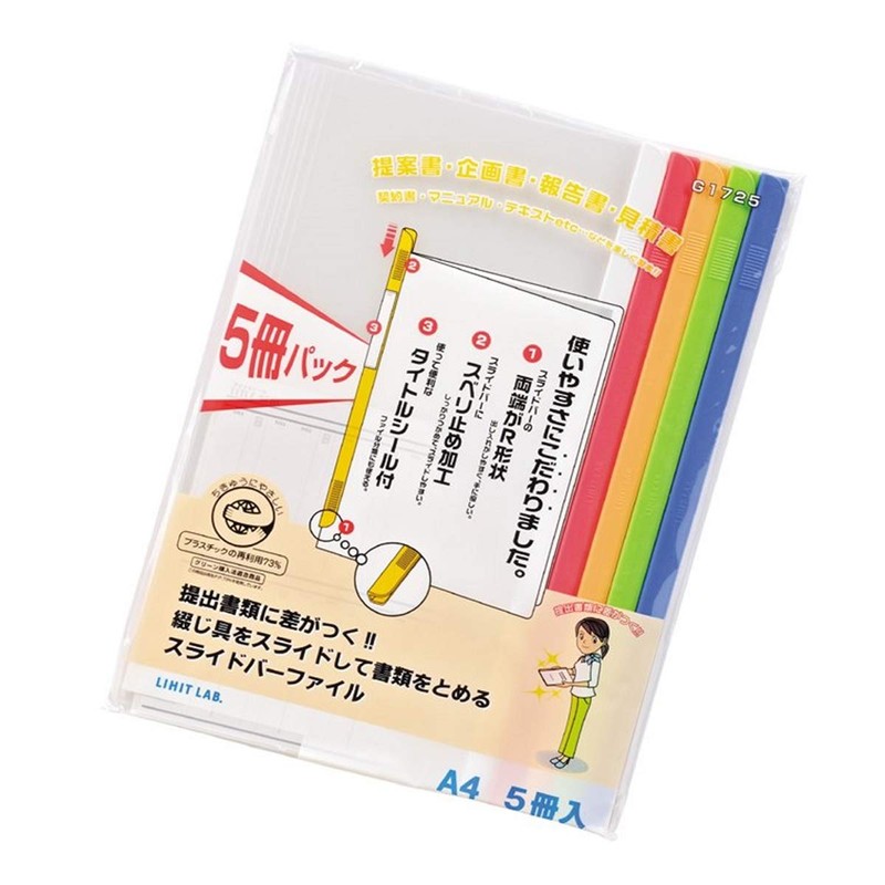 リヒトラブ スライドバーファイル 5冊パック A4 色込 G1725コミ