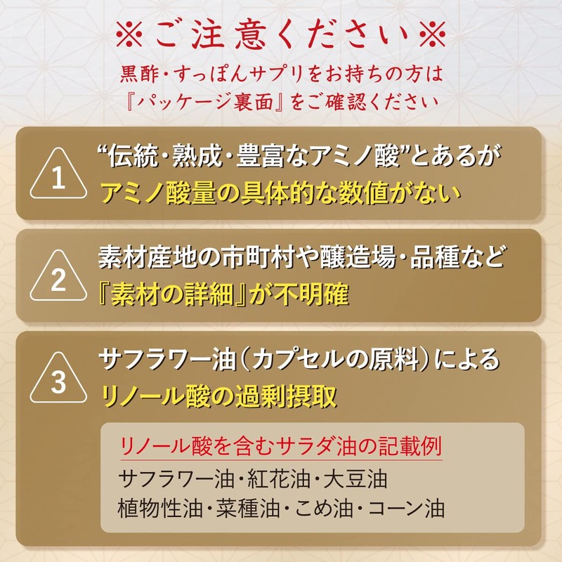 - 【⭕️特徴1:大人気サプリ『命のすっぽん黒酢』がパワーアップ!】業界最大級のアミノ酸量、1日870.87mg。黒酢の質=アミノ酸の量。アミノ酸が1日の健康をサポート。 【⭕️特徴2:黒酢×すっぽん×黒にんにく】伝統と安心の最高級・国産素材を一粒に凝縮。 【⭕️特徴3:"健康"と"飲みやすさ"を両立】亜麻仁油(あまにゆ)で出来たソフトカプセル。
