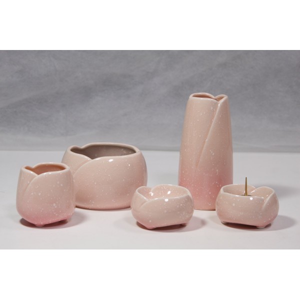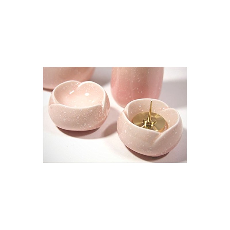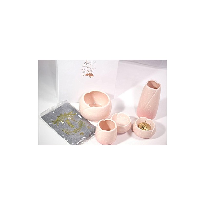 やわらぎ 佛具5点セット 中 さくら (香炉、湯呑、ローソク立、仏器、花瓶)※特選香炉灰(少々)付・ローソク立芯付