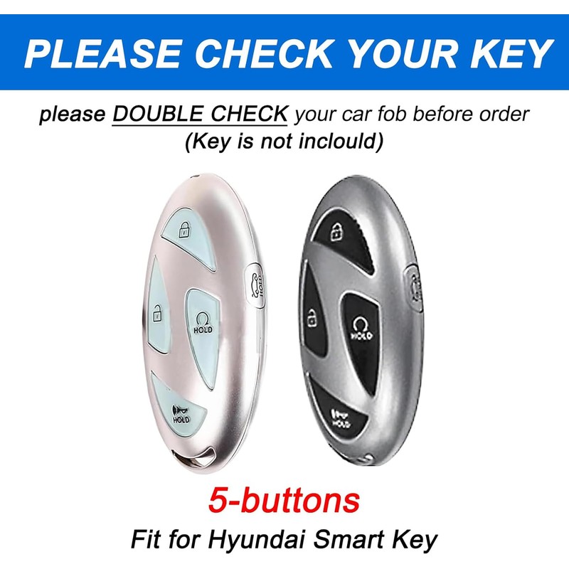 【Fits Model】 For Hyundai 2024-2025 Santa Fe Hybrid, 2025 Tucson, 2023-2025 Ioniq 6, 2023 Grandeur GN7, 2024-2025 KONA, 2024-2025 Elanrtra, 2024-2025 Sonata SEL etc. 5 buttons Keyless Entry Smart Key fob cover.