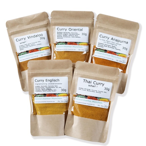 5 Curry Mixtures Sample Set – 1 Spice Kontor Munich