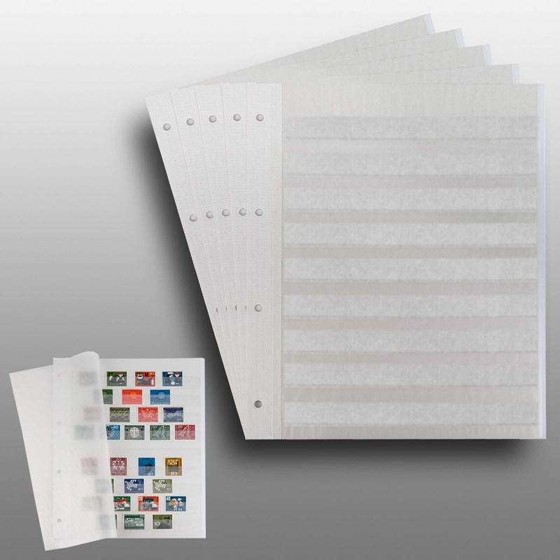 - Jeweils 9 Pergamin-Einsteckstreifen (weichmacherfrei) pro Seite