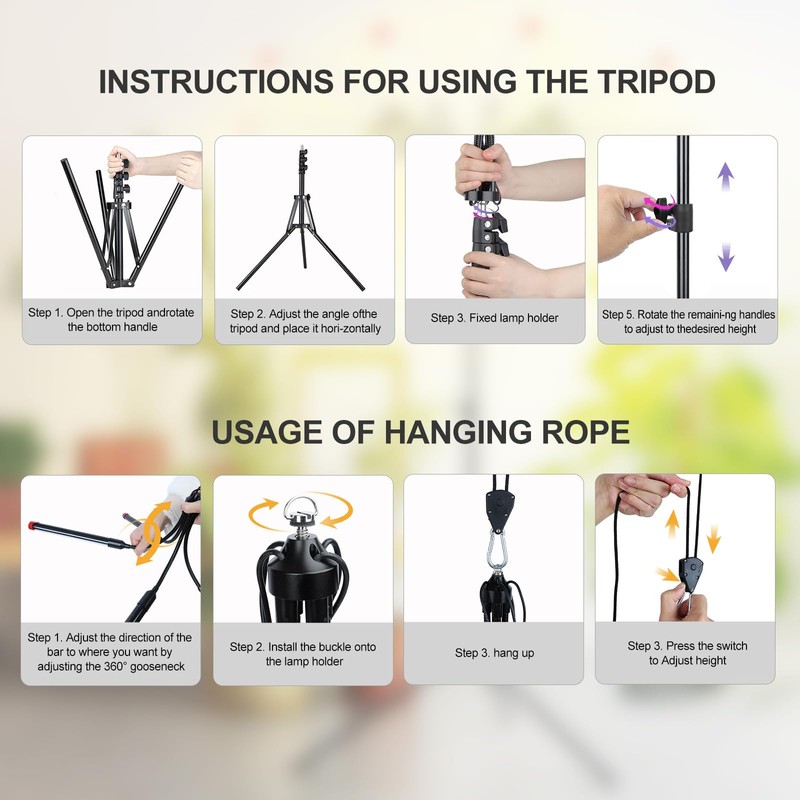 - Spotlight and Adjustable Height Grow Light---60°Spotlight Design, 24"-64" Adjustable Height, 360°Gooseneck. You can light your plants anywhere just as you need.