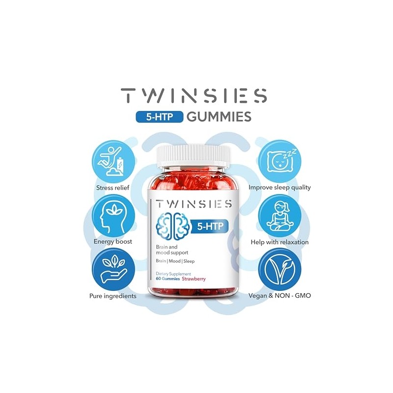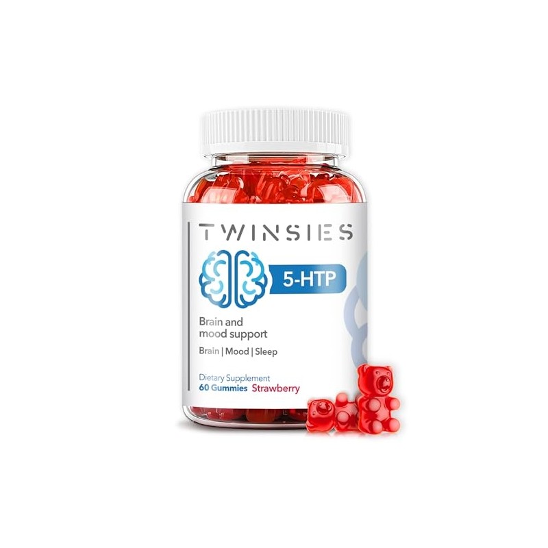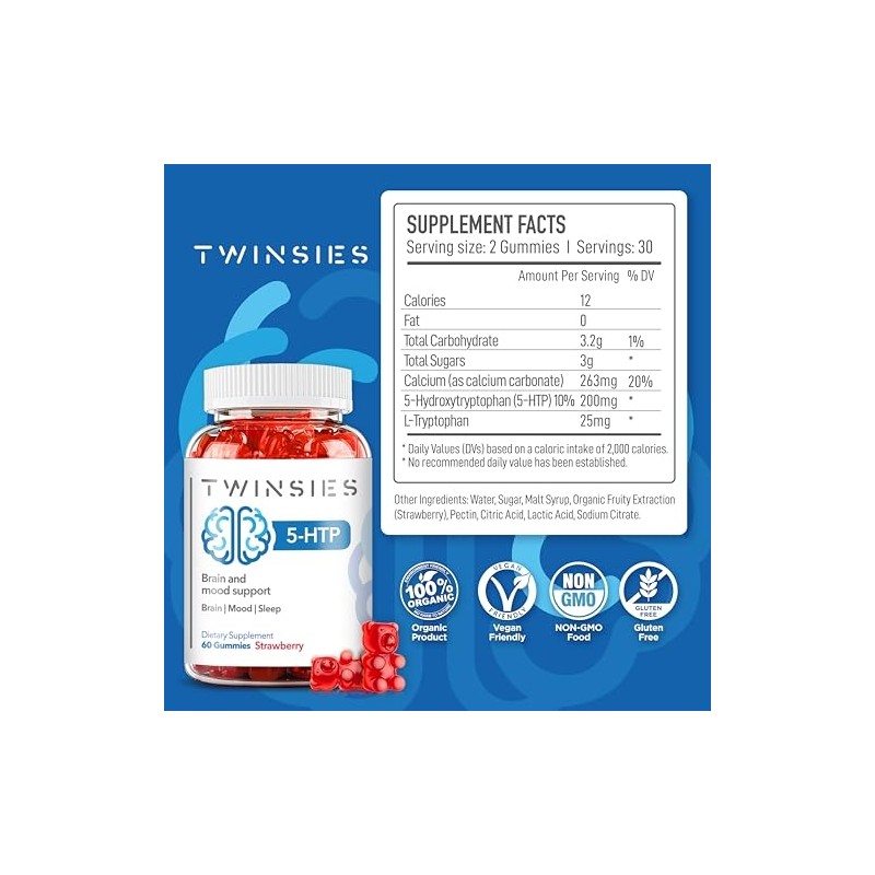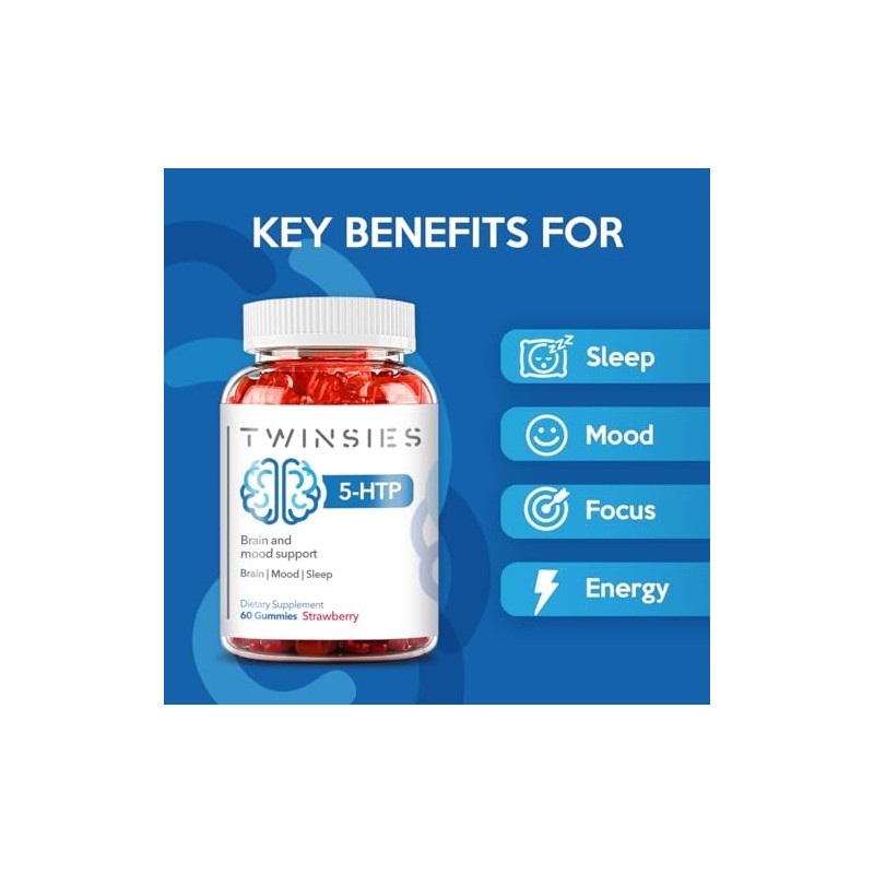 5-HTP Gummies 200mg with L-Tryptophan Supplement for Brain, Mood Stabilizer and Sleep Support, 60 Strawberry Gummies (Strawberry)