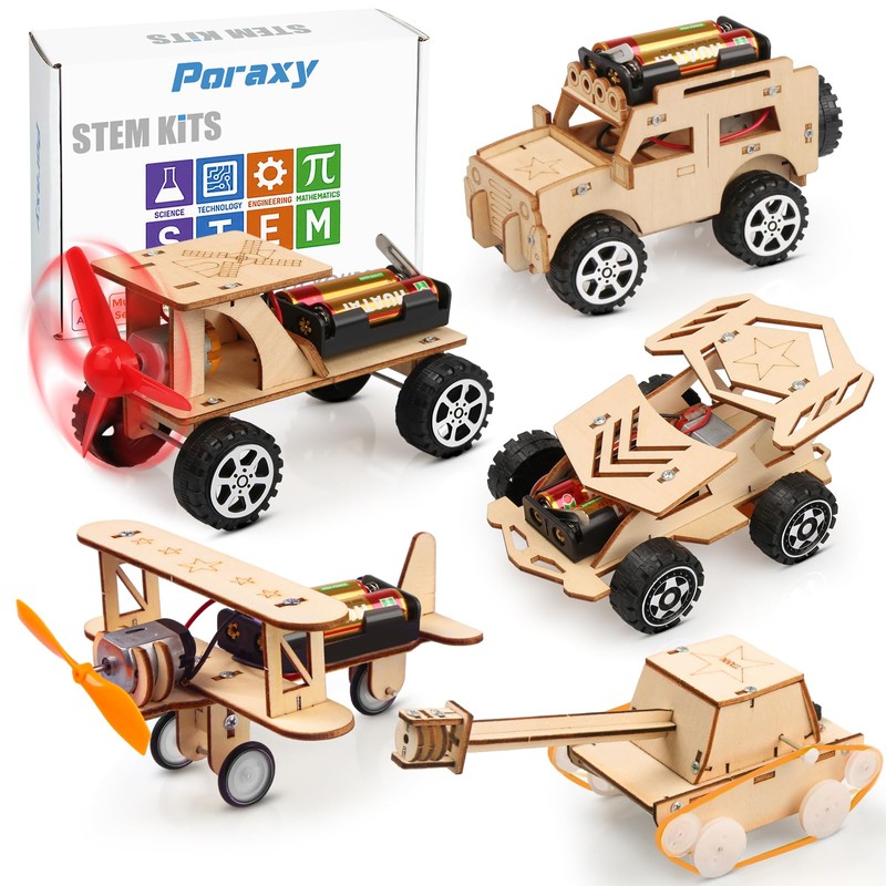 Poraxy 5 in 1 STEM Kits for Kids Age 8-10, Science Building Project Craft for 8-13, Model Car Kit, STEM Toys for Boys Girls Age 8-12, Wooden 3D Puzzles, Birthday Gifts for 6 7 8 9 10 11 12 13 Year Old