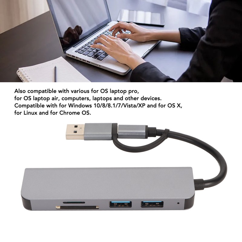 1、5GBPS: The USB C docking station utilizes USB 3.0 technology and is capable of transferring data at speeds up to 5Gbps, which is fast enough to transfer HD movies in seconds, and is reverse compatible with USB 2.0 and USB 1.1. 2、COMPATIBLE DEVICES: The combination of USB A and USB C is designed to make one device compatible with a variety of for OS laptop pro, for OS laptop air, computers, laptops and other devices at the same time. 3、COMPATIBLE SYSTEM: Compatible and easy to use, compatible with for Windows 10/8/8.1/7/Vista/XP and for OS X, for Linux and for Chrome OS. 4、HEAT DISSIPATION: The USB C hub multiport adapter has a good heat dissipation design, it won't get hot even after long time use. 5、PLUG AND PLAY: USB C dongle is plug and play, no driver required, aluminum alloy material, not easy to damage, more stable to use.