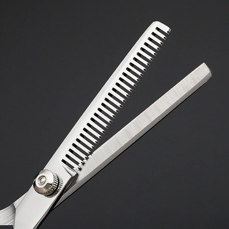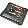 - Complete kit for comprehensive grooming - Dog Grooming Scissors Set with 8.1" Twin Tailed Straight Scissors + 7.5" Profeissonal Twin Tailed Thinning Scissors + 8.1" Twin Tailed Curved Down Scissors + Grooming Comb + Stylish black case suitable for left and right handed. Everything you need in one convenient place.It is also a perfect gift for your friends.
