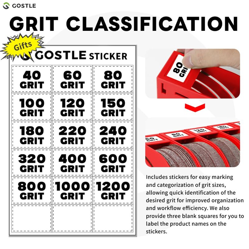 - Grit Classification: Includes stickers for easy marking and categorization of grit sizes, allowing quick identification of the desired grit for improved organization and workflow efficiency.