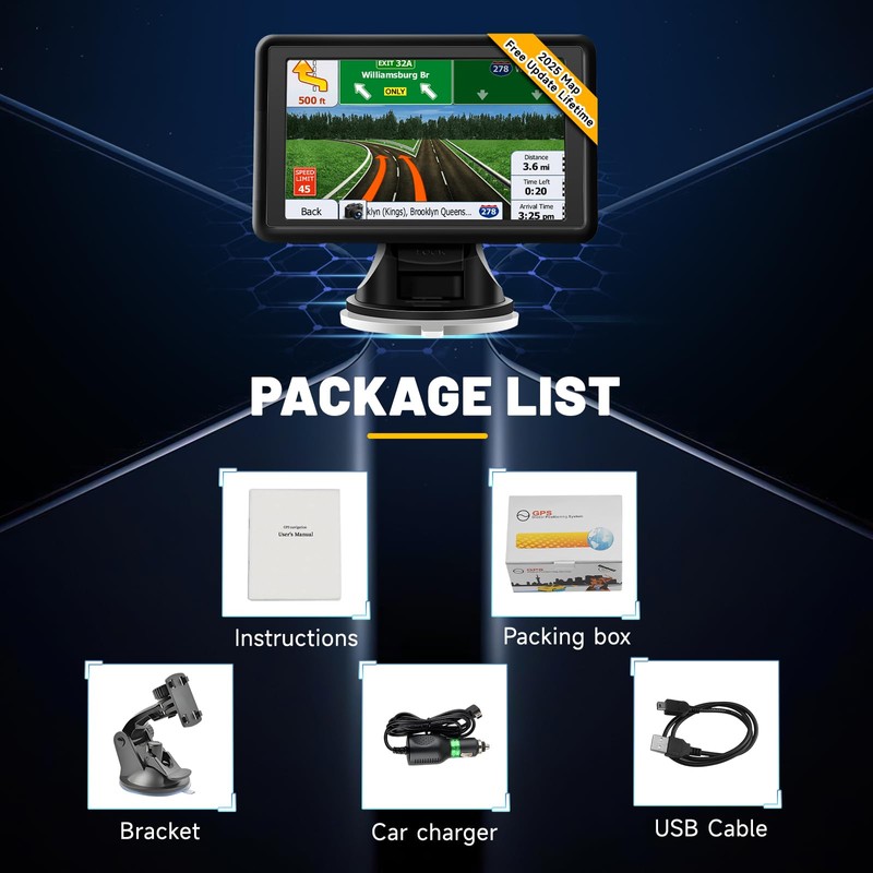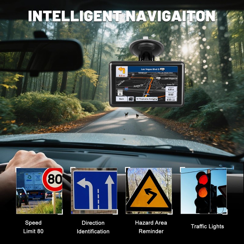 - 【Smart Navigation Function】This satellite navigation system supports multiple search methods, including postal codes, addresses, coordinates and points of interest (POI). It also provides speed camera alerts, street name broadcasts, lane guidance assistance, real-person voice navigation, and 2D and 3D mode switching functions to make your driving easier and more efficient. Special Tip: When entering a postal code in the UK, it is recommended to add a space after entering three characters to ensure accurate map recognition.