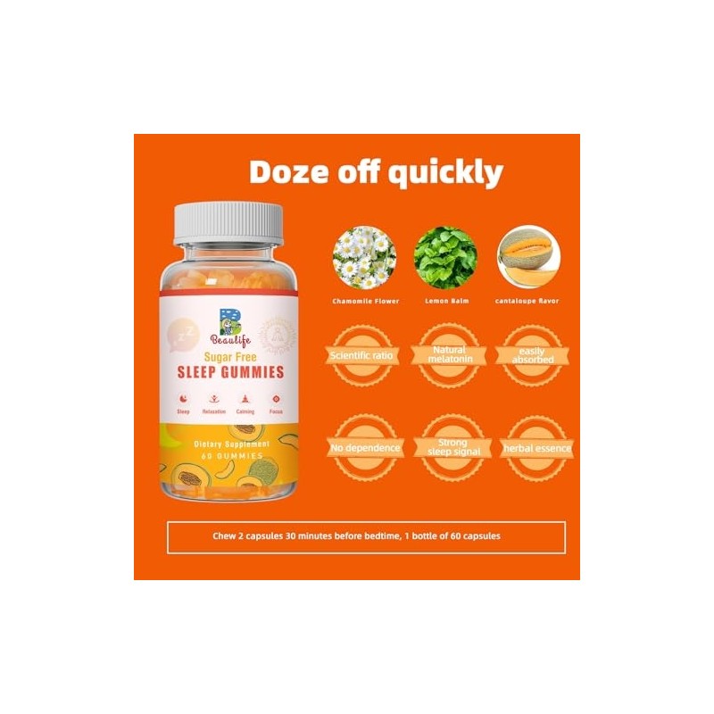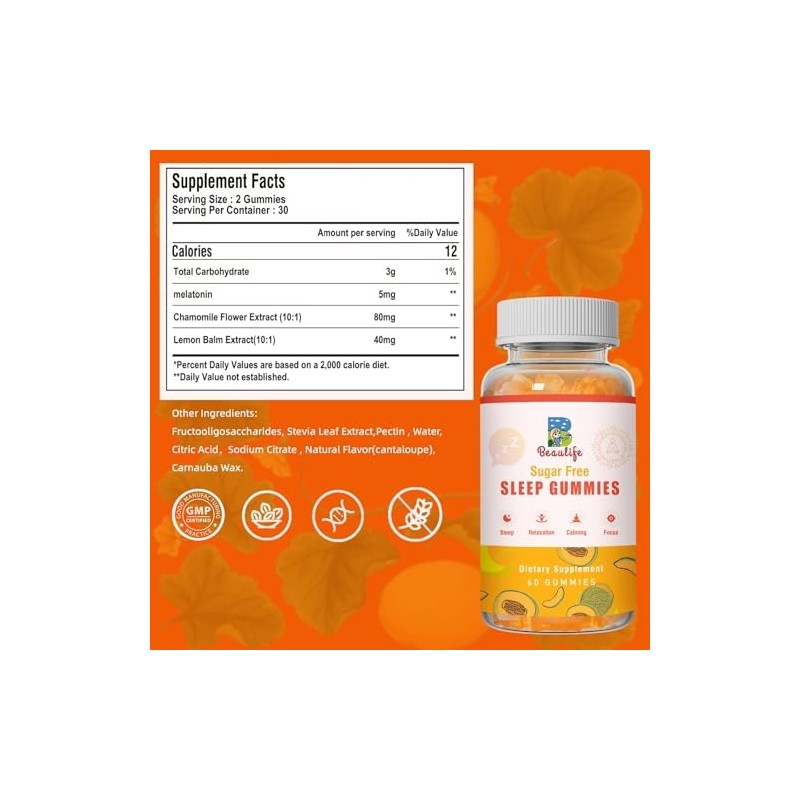 5 mg Melatonin Gummies, Sleep Support for Adults, Melatonin Supplements for Sleeping, 60 Cantaloupe-Flavored Gummies