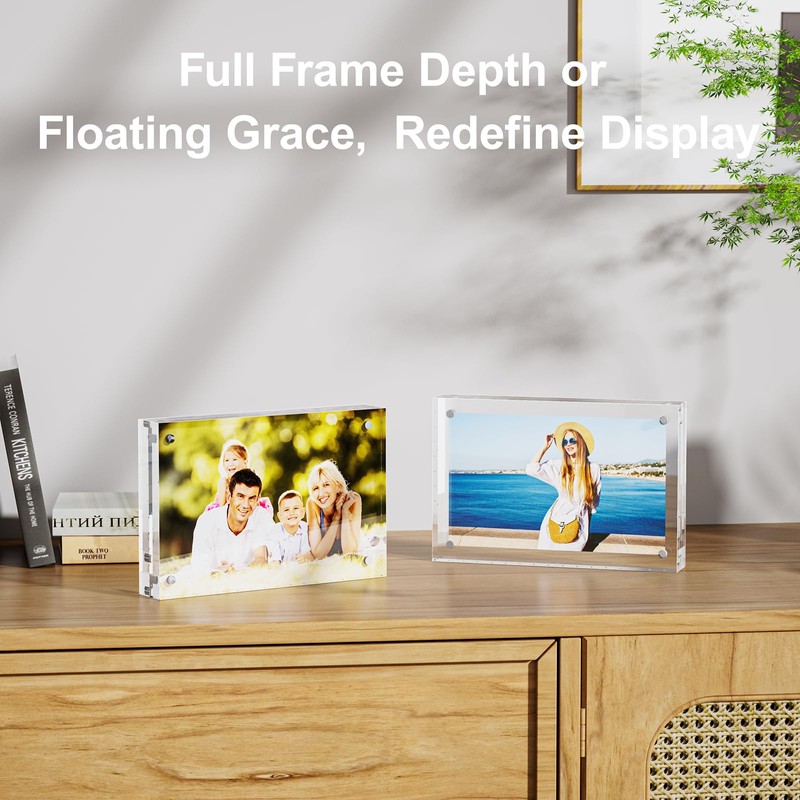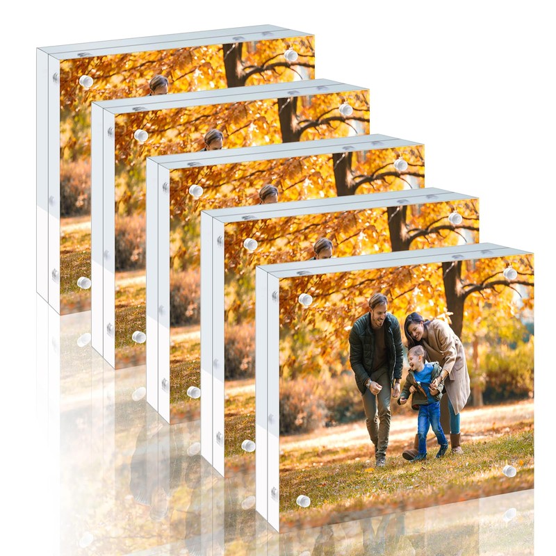 - 【Premium Dual-Sided 5x5 Picture Frame】Display two photos back-to-back in our thickened acrylic frame with magnetic corners for instant photo changes. Reinforced edges provide secure display on any surface, while the frameless design complements modern interiors. Ideal for desks, shelves, or creative arrangements.