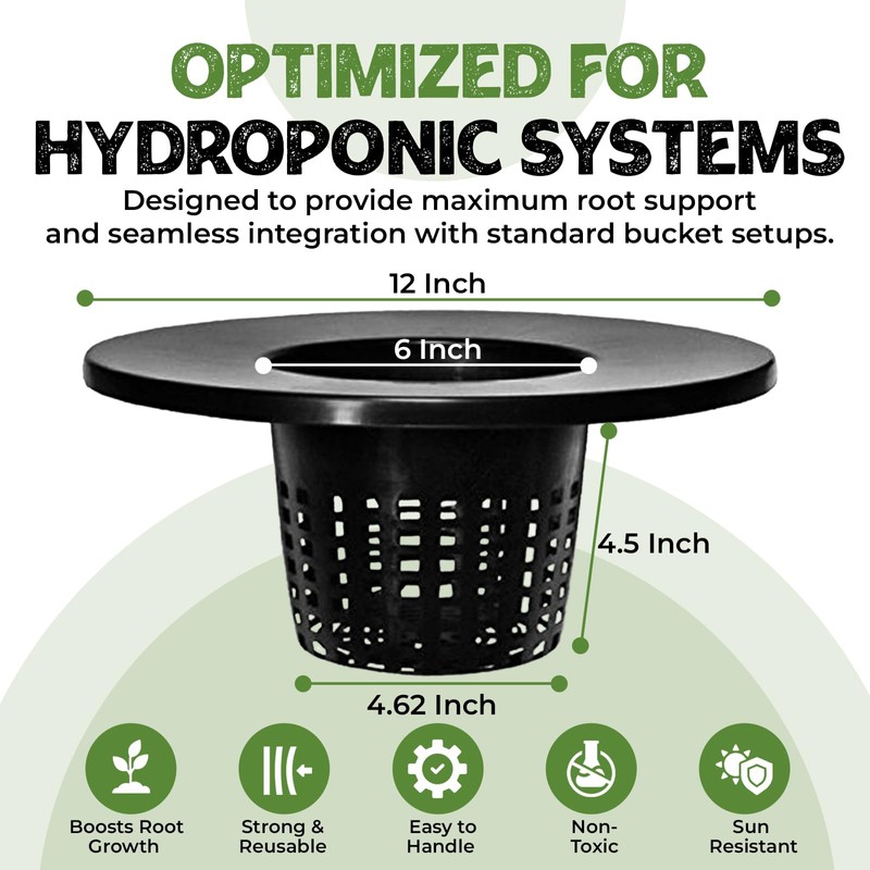 (5 Pack) 6 Inch Wide Mesh Lip Bucket Basket Lid | 5 Gallon Bucket Lids for DWC, Net Pots for Hydroponics + CHQ Conversion Chart