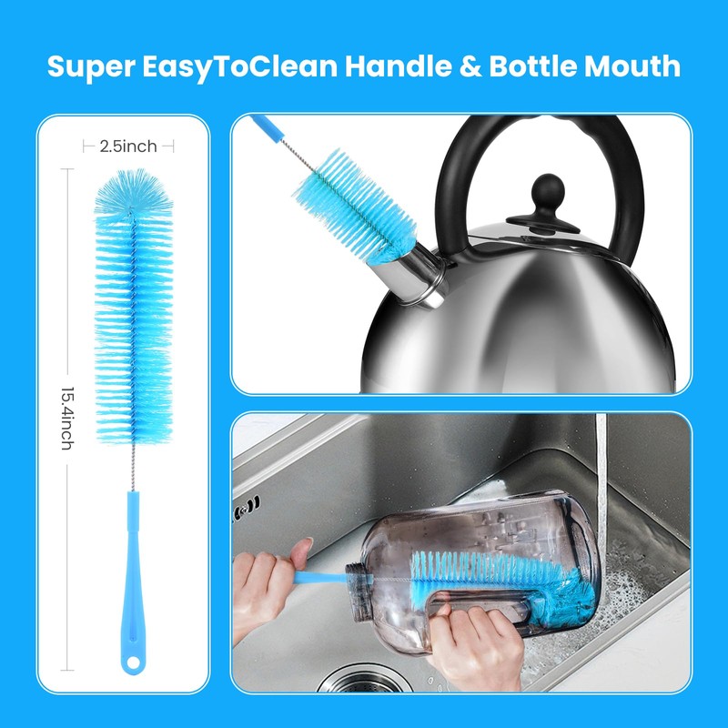 - 15 inch Water Bottle Brush - Multi-function cleaning brush,cleaning brushes for household use can make your housework efficient and easy. You no longer have to be crazy about cleaning coffee cup, tea stain and kettle water stain,Firm and sturdy handle makes the cleaning job easier.