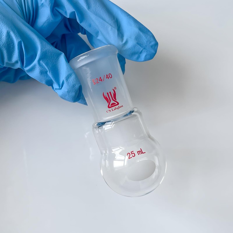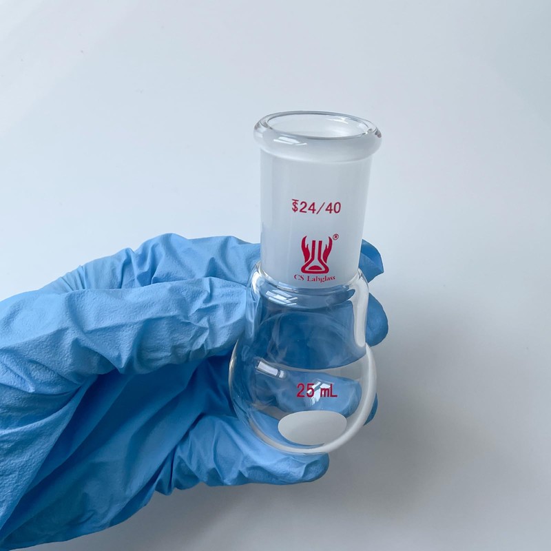 - 25ml, Single neck boiling flask with 24/40 standard outer joint.