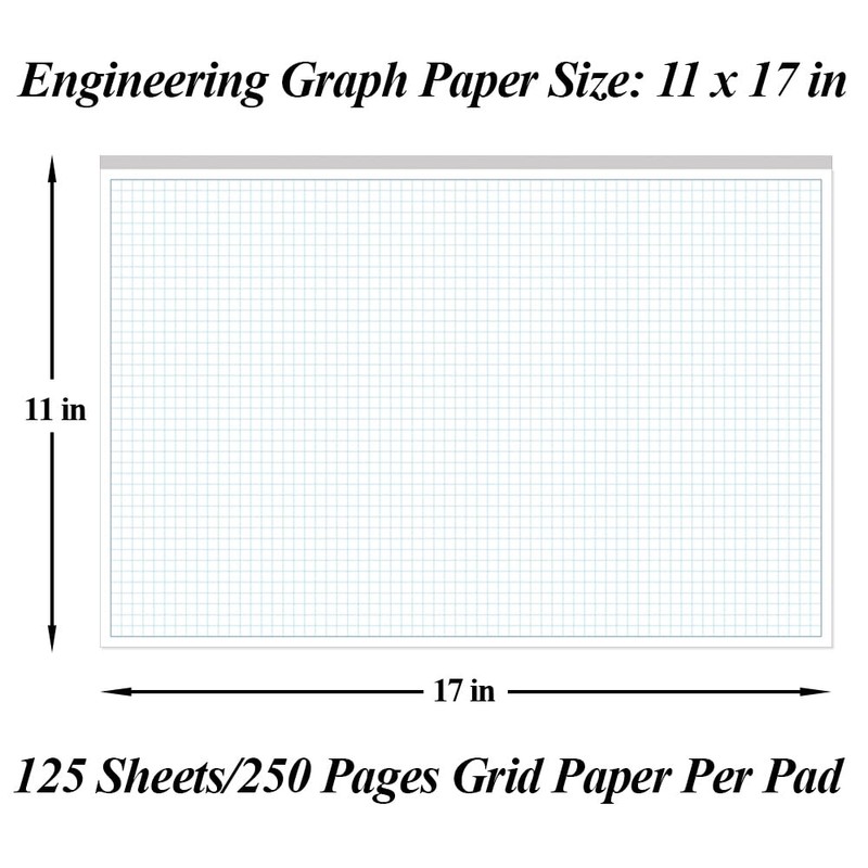 (5-Pack) Engineering Graph Paper Pad - 17" x 11" Grid Paper for Engineering, Drafting, Blueprint Drawing, 125 Sheets/250 Pages 4x4 Blue Quad Rule by Better Office Products