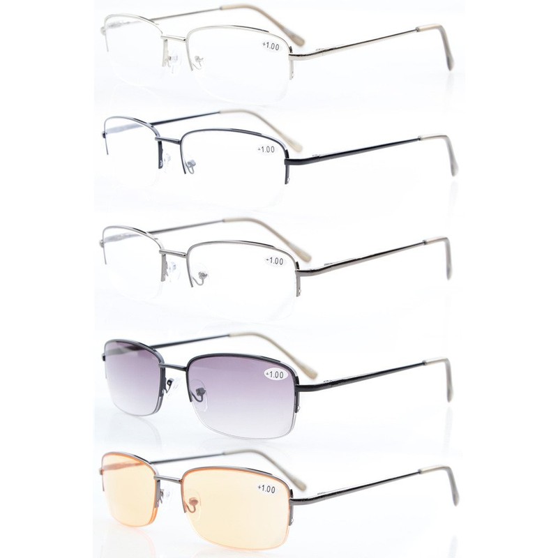 5-Pack Eyekepper Metal Half-Rim Spring Hinges Reading Glasses Include Computer Readers +2.5