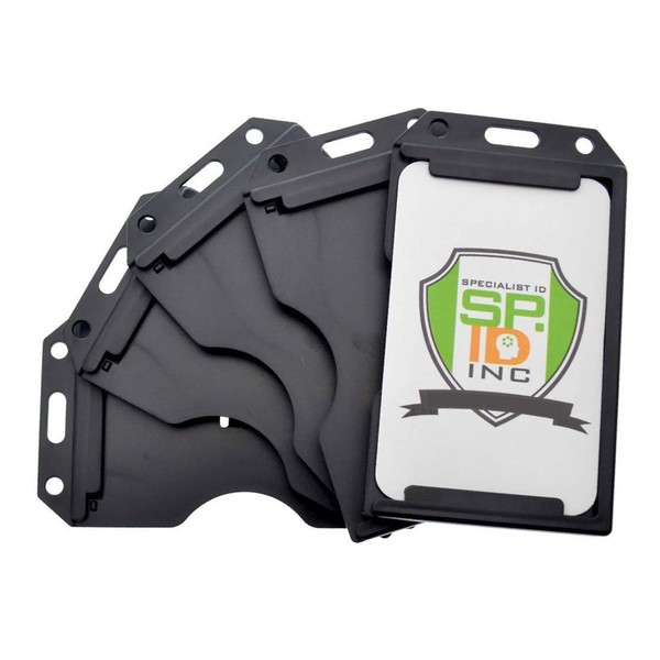 Now in a budget friendly 5 pack! Black 2 sided vertical multi-card holder by Specialist ID. Holds one card on the front and up to 2 on the back. Cards load from the side.