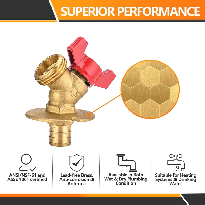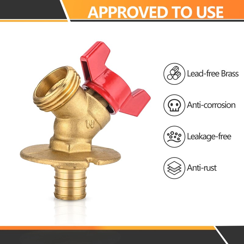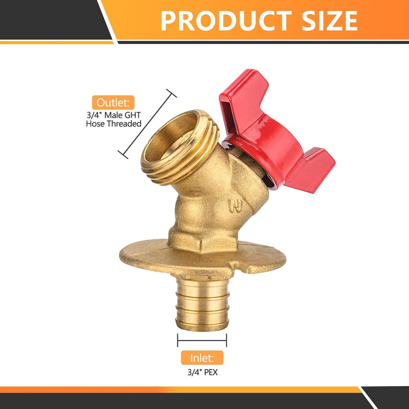 - PACKAGE INCLUDE-5 pack red sillcock hose bibb with flange. 3/4" PEX Inlet × 3/4" MHT Outlet.