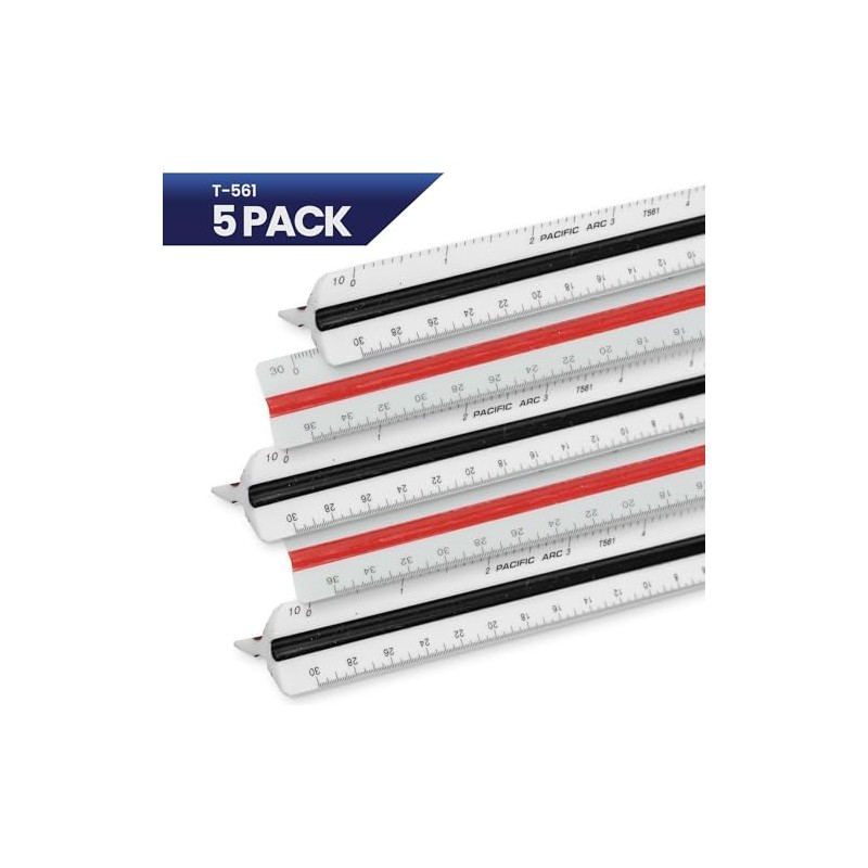 5 Pack - Pacific Arc Engineering Scale Ruler, 6" Scale Ruler for Architectural Designs, Engineering, or Drafting