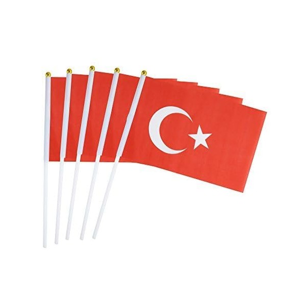 5 Pack Turkey Mini HandHeld Stick Flag,Suitable For Various Holiday Parties,And National Flag Day.