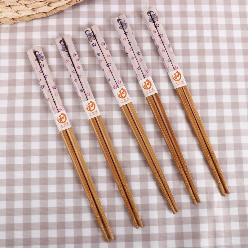 5 Pairs Chopsticks, Cat Flower Pattern Natural Wood Chopstick Set, Reusable Chinese Chopsticks Tableware Set, Dishwasher Safe, 8.8 Inch/22.5cm(C)