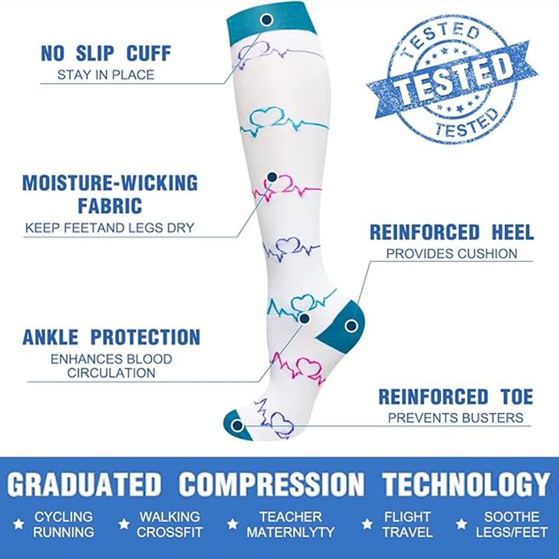 - YOUR NEW CHOICE – If you are tired of the 4-pair, 6-pair and 8-pair combinations on the market, You can choose 5 pairs of compression socks. Whether you like bright or dark combinations, you can buy them at the same time without worrying about buying too many at once.