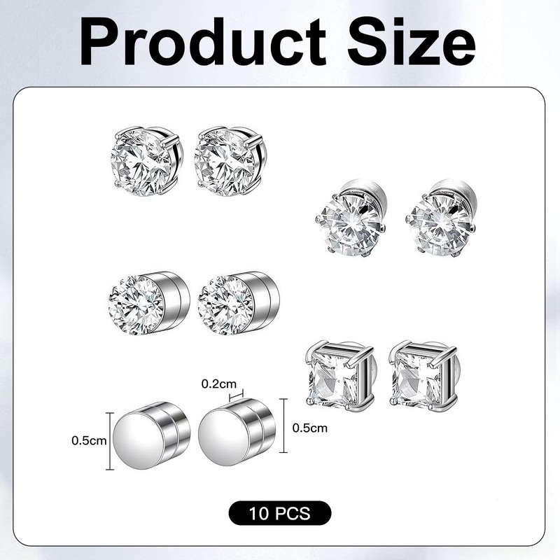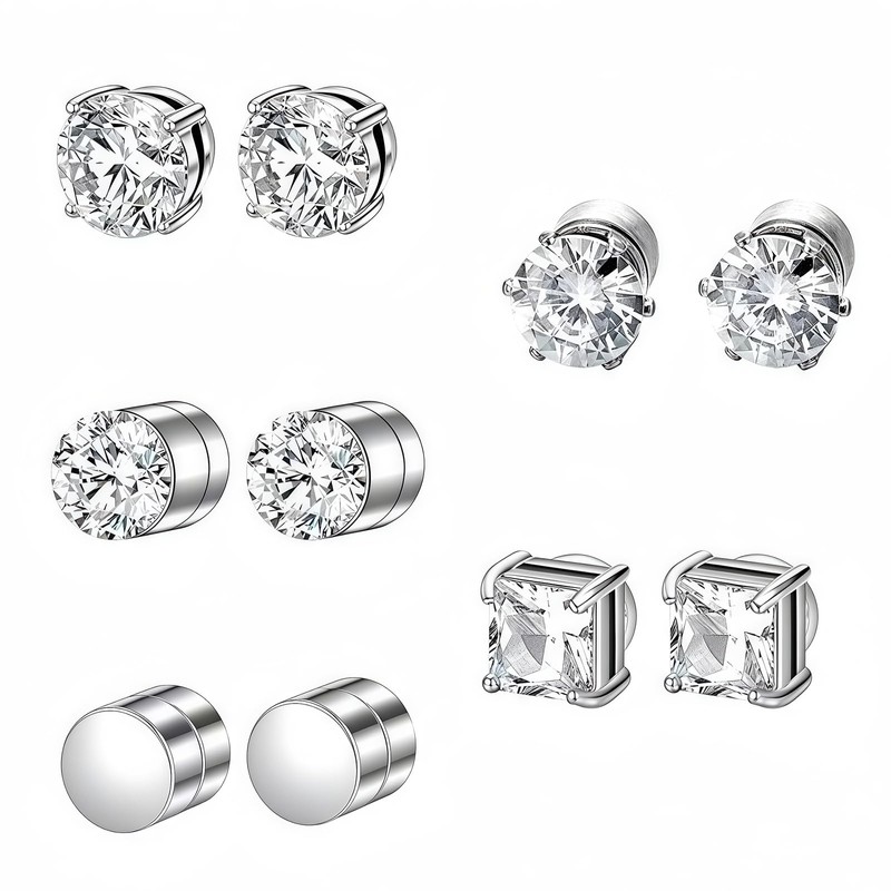- Get this set of 5 pairs of magnetic earrings to increase your glamour immediately. Square and round zirconia earrings and disc earrings are flexible and individually adjustable to suit your everyday life or special occasions.