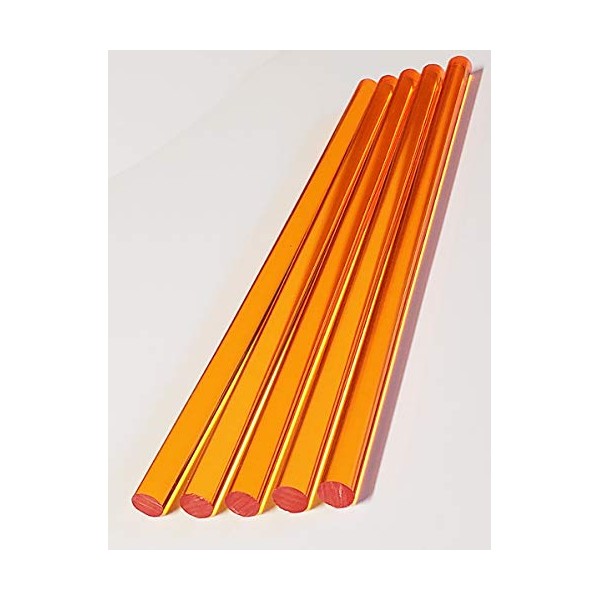 5 Pcs 1/2" Diameter x 12" Clear Amber Translucent Extruded Acrylic - Plexiglass Lucite Rod - .50 Dia - 12.7mm