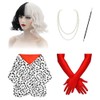 5 Pcs Dalmatian Costume Include Dalmatian Shawl Red Gloves Black White Wig and Pearl Necklace