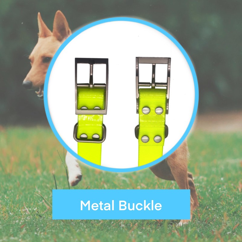 - COMPATIBILITY: The collar strap is 1 inch wide and 28 inches long. The length can be freely cut to size. Designed as a direct replacement strap for Garmin T20, TT25, T5, TT10, TT15, DC50 dog collar devices, featuring a durable metal buckle for secure fastening