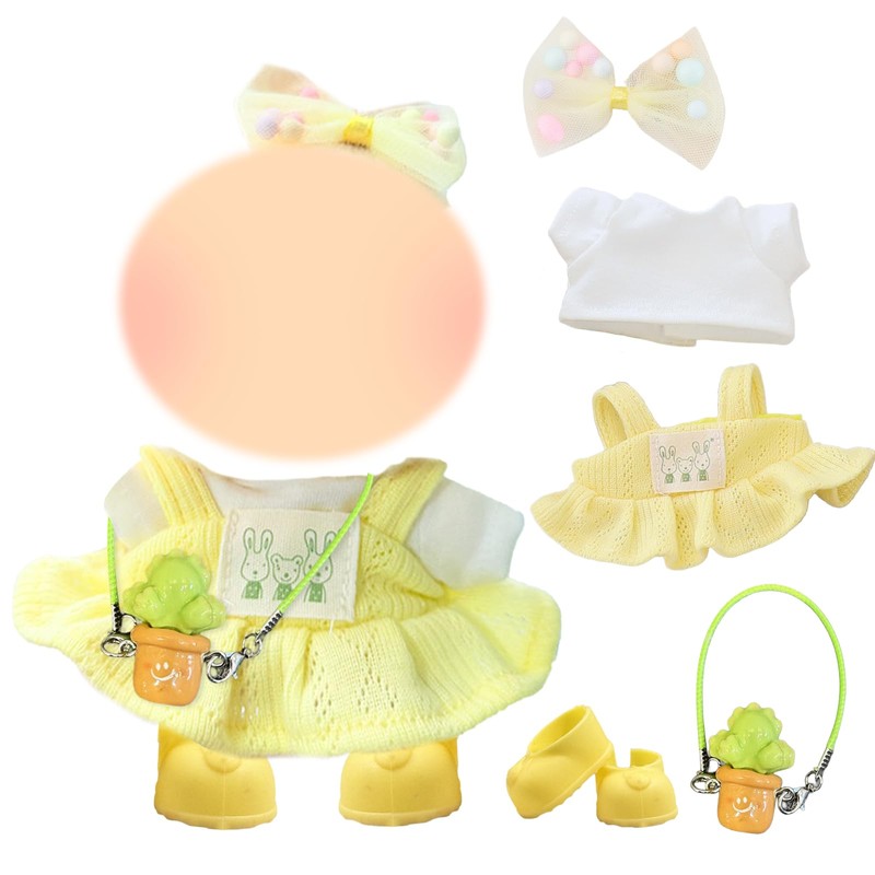 - 【Package Contents】: You will receive 1 versatile white top, 1 cute yellow bunny suspender skirt, 1 candy-colored bow headband, 1 delicate potted plant pendant and 1 pair of pink shoes. The set includes 5 items, which can highlight the uniqueness of the 17cm doll after wearing. Both boys and girls will like it, come and dress your little doll!
