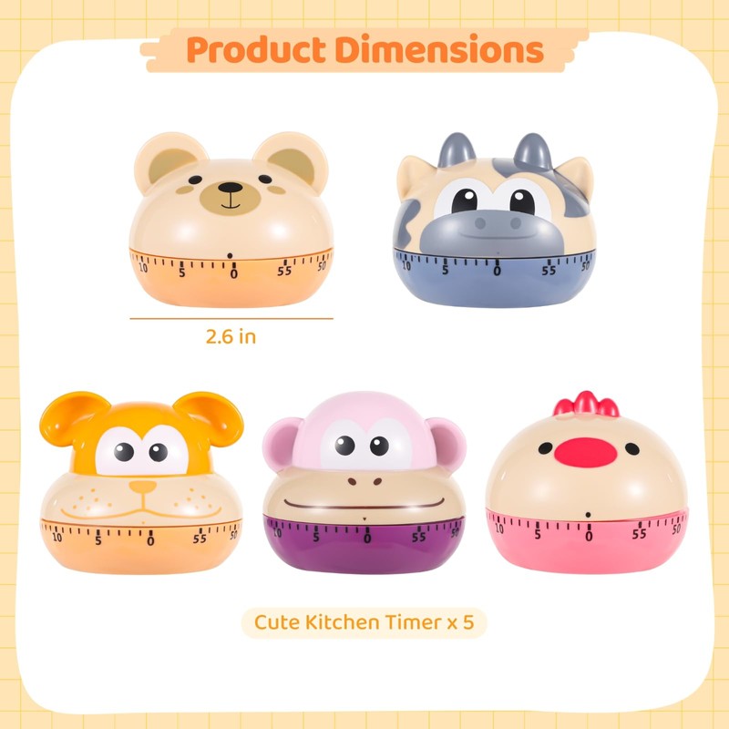 - Charming Animal Designs: Infuse fun into your cooking with cute kitchen timers; featuring playful cow, puppy, monkey, chick, and bear designs; perfect for brightening up any kitchen or your little one's room