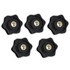 5 PCS M6 Star Clamping Nuts, Plastic and Brass Wing Nuts, Clamping Handle Knobs Diameter 31mm, Handle Star Nut for Machines, Furniture, Machine Tools, Fitness Equipment (5Pcs Black)